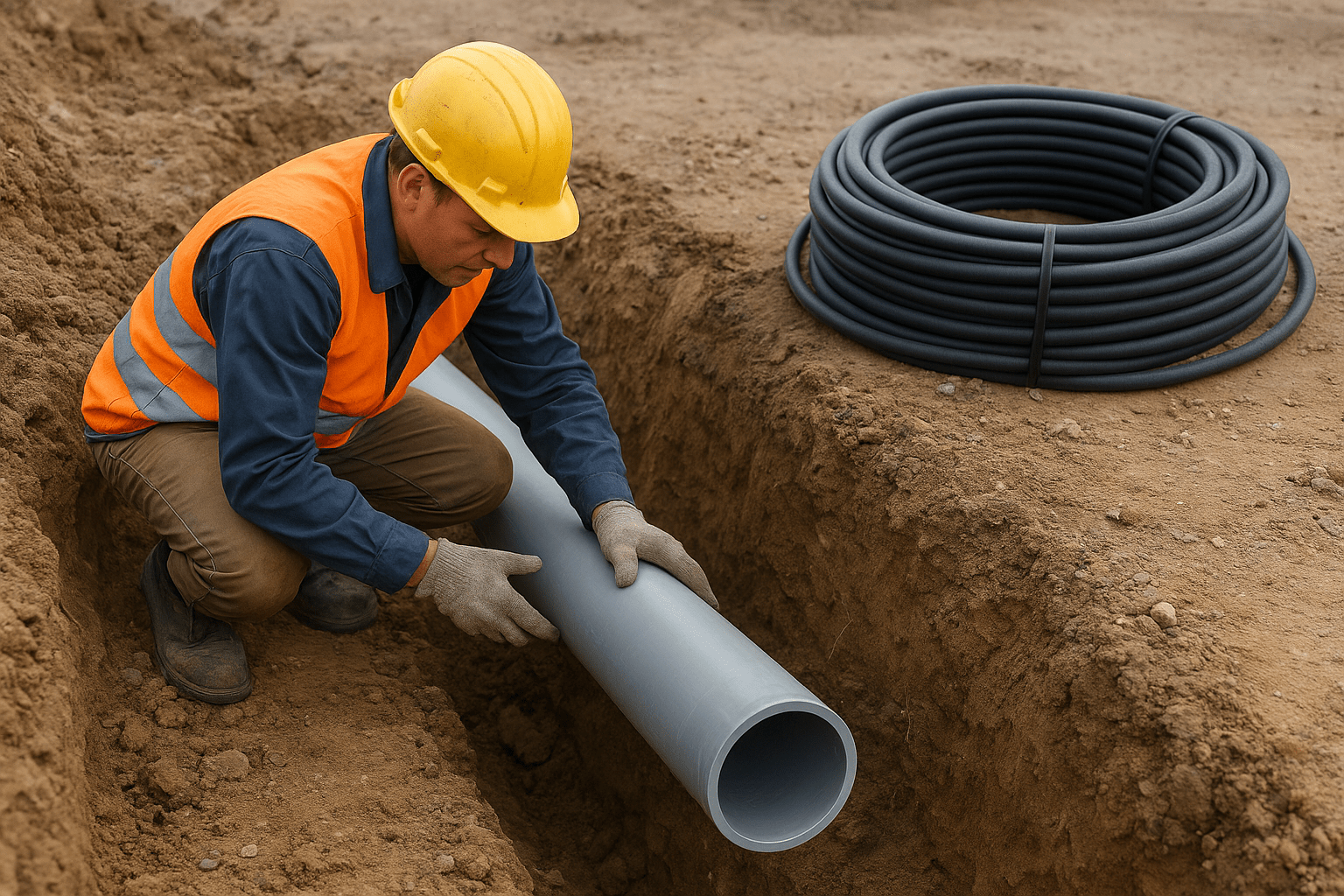 (Hình ảnh công nhân đang thi công đi dây điện âm đất)