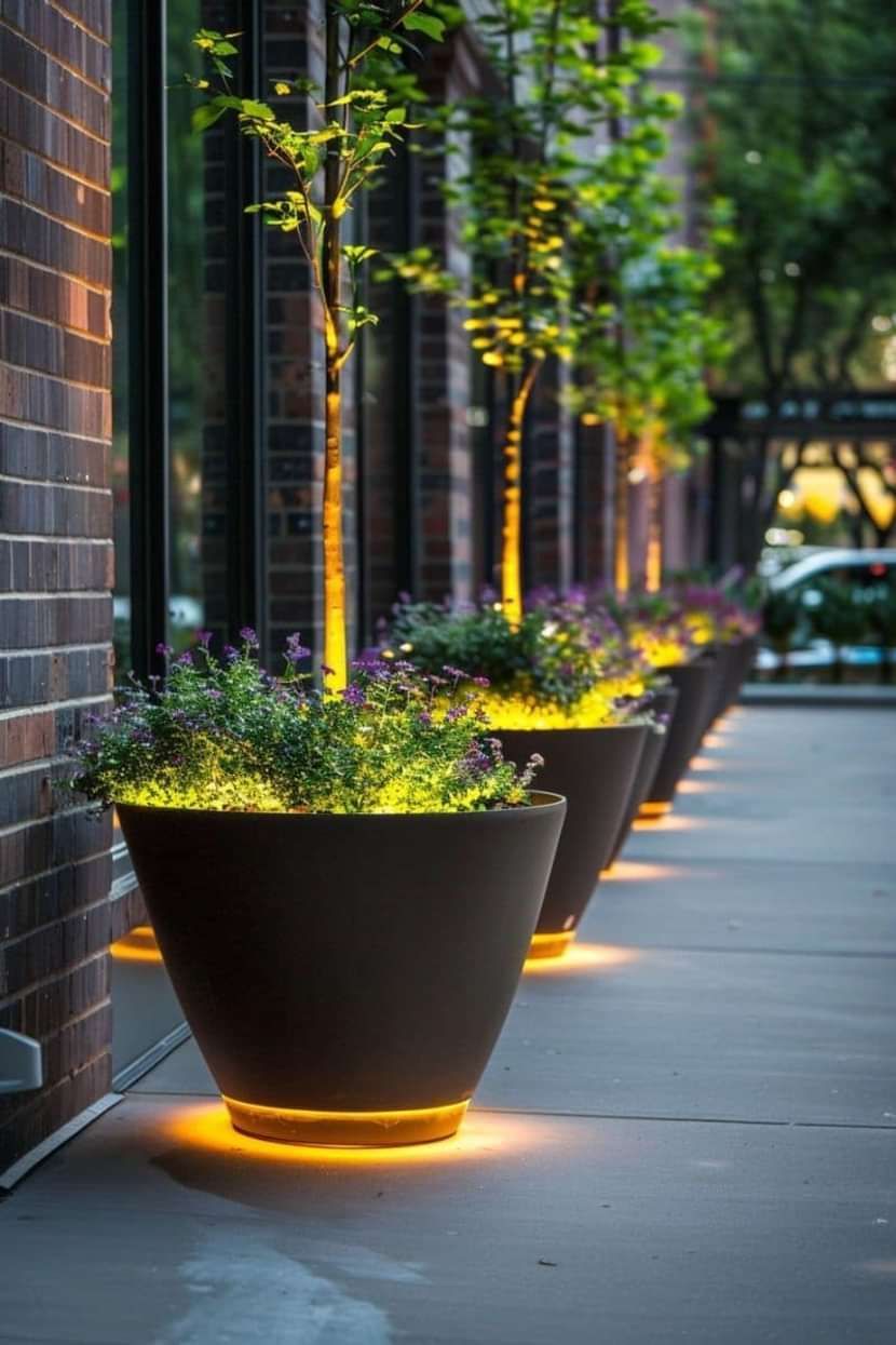 Cây xanh: Dùng đèn uplight để tạo chiều sâu.